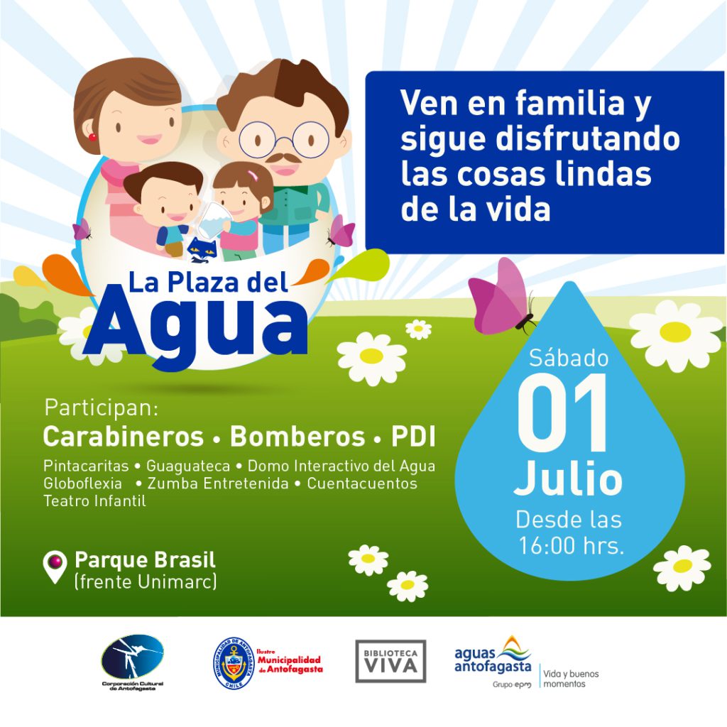 Una entretenida actividad familiar será la gran alternativa para este fin de semana para todos los antofagastinos. Se trata de “La Plaza del Agua”, un encuentro para grandes y chicos que se desarrollará este sábado 1 de julio a partir de las 16:00 horas en el Parque Brasil (justo frente al Supermercado).