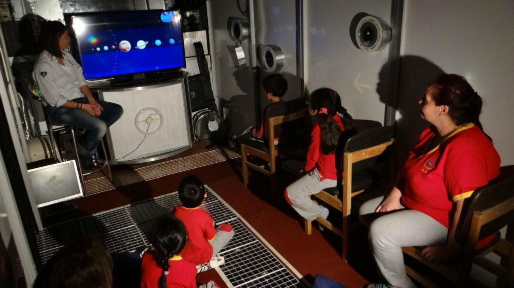 El Ecoplanetario considera un recorrido de 15 minutos aproximadamente y se compone de tres momentos: introducción al universo, con imágenes fluorescentes de conocidas constelaciones; video educativo acerca del sistema solar y sus planetas; y para finalizar una habitación que los transportará al centro del espacio.
